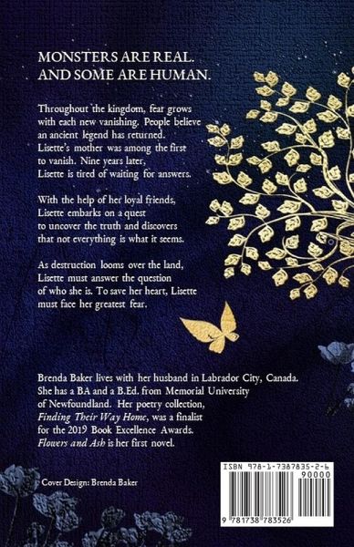 Fear grows with each new vanishing. People believe an ancient legend has returned. The land of Wrunwicks has been at peace for more than a hundred years. In the town of Stonebridge, Lisette's mother was among the first to never return home. Nine years later, Lisette still mourns the loss of her mother. With the help of her friends, Lisette embarks on a quest to uncover the truth behind the vanishings. Throughout her journey, Lisette unlocks the secrets to a land born of conflict and betrayal - and discovers the truth about herself. Along the way, she will meet the fair folk of Evergreen Forest and confront the monsters that invade her land. Flowers and Ash is a magical tale of love, hope, and courage.