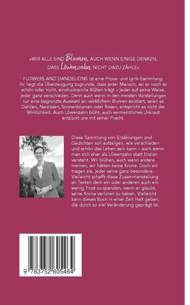 "Wir alle sind Blumen, auch wenn einige denken, dass Löwenzahn nicht dazu zähle."Flowers and Dandelions ist eine Prosa- und Lyriksammlung. Ihr liegt die Überzeugung zugrunde, dass jeder Mensch, sei er noch so schön oder nicht, eindrucksvolle Blüten trägt - jeder auf seine Weise, jeder ganz verschieden. Denn auch wenn in den Vorstellungen vieler nur eine begrenzte Auswahl an 'wirklichen' Blumen existiert, seien es Dahlien, Narzissen, Sonnenblumen oder Rosen, entspricht es nicht der Wirklichkeit. Auch Löwenzahn blüht, auch vermeintliches Unkraut mag uns mit seiner Pracht entzücken. Diese Sammlung von Erzählungen und Gedichten soll aufzeigen, wie verschieden und schön das Leben sein kann - auch wenn man sich eher als Löwenzahn statt Enzian versteht. Wir blühen, auch wenn andere meinen, wir hätten keine Krone. Doch wir tragen sie, jeder seine ganz besondere. Vielleicht schafft diese Zusammenstellung an Texten dem ein oder anderen auch ein wenig Trost zu spenden, wenn er glaubt, seineKrone verloren zu haben. Vielleicht kann dieses Buch in einer Zeit Halt geben, die durch so viel Veränderung geprägt ist.