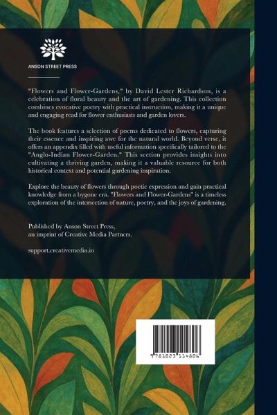 "Flowers and Flower-Gardens," by David Lester Richardson, is a celebration of floral beauty and the art of gardening. This collection combines evocative poetry with practical instruction, making it a unique and engaging read for flower enthusiasts and garden lovers. The book features a selection of poems dedicated to flowers, capturing their essence and inspiring awe for the natural world. Beyond verse, it offers an appendix filled with useful information specifically tailored to the "Anglo-Indian Flower-Garden." This section provides insights into cultivating a thriving garden, making it a…mehr