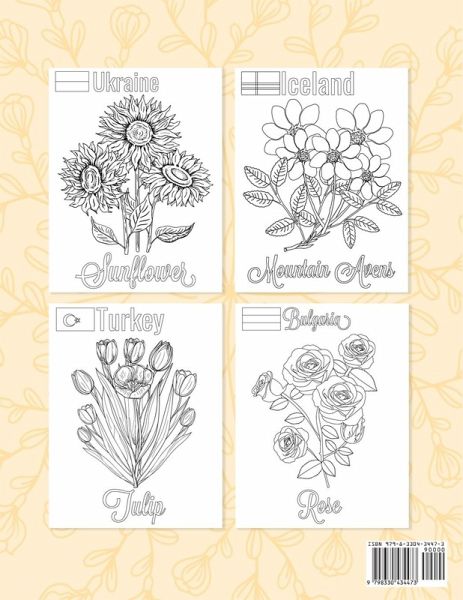 Explore the Beauty of Global Flora with Flowers Around the World! Embark on an exciting coloring journey that takes you around the world through its national flowers. Flowers Around the World: Countries Around the World and Its National Flower Coloring Book combines your love for nature, culture, and creativity in one beautiful, educational package. From the Cherry Blossom of Japan to the Lotus of India, this book celebrates the unique beauty of each country's national flower. Inside, you'll discover:50 National Flower Designs: Beautifully illustrated flowers representing countries from all corners of the globe, each paired with the country's name for an educational experience. Cultural Exploration: Learn about each country's connection to their national flower while you color, making it both fun and informative for colorists of all ages. Variety of Styles: From simple floral patterns to more intricate designs, this book is perfect for colorists of all skill levels. Relaxation and Creativity: Immerse yourself in the calming and therapeutic act of coloring as you explore the world through flowers. Single-Sided Pages: Prevents bleed-through and allows you to remove and display your completed artwork. Perfect for plant lovers, travel enthusiasts, and anyone who wants to experience the beauty of the world through coloring, Flowers Around the World offers an escape into global nature and culture. Whether you're looking to unwind, learn something new, or simply enjoy the artistry of flowers, this coloring book is a delightful journey across the globe. Makes an excellent gift for travelers, flower enthusiasts, and anyone seeking a creative and educational coloring experience.