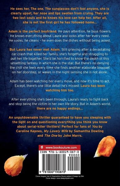 He sees her. The one. The sunglasses don't fool anyone, she is clearly upset, her nose and lips swollen from crying. They are two lost souls and he knows his love can help her. After all, she is not the first girl he has followed home… Adam is the perfect boyfriend. He pays attention, he buys flowers. He knows everything about Laura and looks after her every need. He cooks, he cleans - he even does the dishes without being asked. But Laura has never met Adam. Still grieving after a devastating car crash that killed her family, she's forgetful and struggling to pull her life together. She'd be horrified to know the depth of this unsettling fantasy in which she is the star. But there's no denying the chill she feels every time she finds another elaborate bouquet on her doorstep, or wakes in the night sensing she is not alone. Adam has been watching her every move, and now it's time to act. Except, there's one little detail he's missed: Laura has been watching him too. After everything she's been through, Laura's ready to fight back and stop being the victim in her own life story. But in Adam's world, there are no happy endings… An unputdownable thriller guaranteed to have you sleeping with the light on and questioning everything you think you know about serial-killer thrillers! Perfect for fans of You by Caroline Kepnes, My Lovely Wife by Samantha Dowling and The One by John Marrs. Readers adore Flowers for the Dead: 'Loved it! Brilliantly original and addictive. Very clever.' B.A. Paris, bestselling author of Behind Closed Doors and The Breakdown. 'Will have you looking over your shoulder and under your bed... Original, gripping, with a deep psychological impact.' Sunday Mirror 'Utterly twisted, satisfyingly shocking and brilliantly clever... To come across something unique in a genre that is so massively popular is always a special treat.' Nicky Reviews Reads 'This is a stonking read and if you haven't read it, why haven't you read it?? You really are missing out!' Damp Pebbles 'This book is one hell of read and totally took my breath away. Seriously, I thought I was going to have a heart attack.' Chelle's Book Reviews 'Mesmerising, terrifying, intriguing, very unsettling, totally compulsive and a fantastic read.' Being Anne
