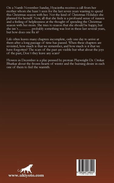 On a Numb November Sunday, Hyacintha receives a call from her mother whom she hasn`t seen for the last seven years wanting to spend this Christmas season with her. Not the kind of Christmas Holidays she planned for herself. Now, all that she feels is a profound sense of nausea and a feeling of helplessness at the thought of spending the Christmas season with her mom. She tries to reason that she should be happy, but she isn`t................. probably something was lost in these last several years, but how does one fix it? Life often leaves many chapters incomplete, only one day to arrive at them after a long passage of time has passed. When these chapters are revisited, how much is that we remember, and how much is it that we have forgotten? The scars of the past are visible but what about the joys of the past, Don`t they leave any scars? Flowers in December is a play penned by protean Playwright Dr. Omkar Bhatkar about the frozen hearts of winter and the burning desire in each one of them to feel the warmth.