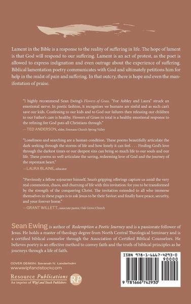 Sean Ewing writes poetry as a reflection of his faith journey, capturing the intersections of human suffering, hope, and divine grace. Through vivid imagery and contemplative themes, his work explores the profound truths of God's love, mercy, and redemption. Deeply inspired by nature, personal struggle, and the resilience of faith, Ewing writes to evoke reflection and offer comfort to those walking through life's valleys. His poems speak to the heart of what it means to be held by Christ through every storm, grounded in the unchanging truth that, in Jesus, we find our ultimate peace and purpose.