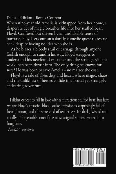 Deluxe Edition with Bonus Content! When nine-year-old Amelia is kidnapped from her home, a desperate act of magic breathes life into her best friend: a stuffed bear named Floyd. Confused, but driven by an unshakable sense of purpose, Floyd sets out on a darkly comedic quest to rescue her- despite having no idea who she is. As he blazes a bloody trail of carnage through anyone foolish enough to stand in his way, Floyd struggle to understand his newfound existence and the strange, violent world he's been thrust into. The only thing he know for sure? He was born to save Amelia, no matter the cost. Floyd is a tale of absurdity and heart, where magic, chaos and the unlikeliest of heroes collide in a brutal yet strangely endearing adventure.