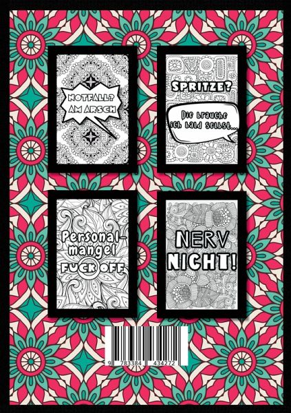 Fluch Malbuch für Pflegekräfte - Schwarzer Humor für die wahren Helden des Alltags! Format : A5 Seiten : 72, Neutrale Rückseite.Pflegen, schieben, retten und dabei ständig freundlich bleiben - wer im Pflegeberuf arbeitet, verdient nicht nur Respekt, sondern auch ein Ventil für den täglichen Stress. Dieses Malbuch ist genau das Richtige! Mit 36 derben, sarkastischen und mega lustigen Sprüchen bietet es eine Auszeit voller schwarzem Humor - perfekt, um den Wahnsinn des Pflegealltags auf die leichte Schulter zu nehmen.Höhepunkte :-Sprüche, die ins Schwarze treffen : Ehrlich, frech und mit der Extraportion Sarkasmus - genau das, was man nach einer langen Schicht braucht.-Entspannung garantiert : Frust abbauen und dabei kreativ sein - die ideale Mischung aus Lachen und Loslassen.-Das perfekte Geschenk : Für gestresste Pfleger, lustiges Kollegium oder einfach als Anerkennung für sich selbst - dieses Malbuch zaubert garantiert ein Lächeln.Weil Lachen manchmal die beste Medizin ist - dieses Malbuch ist die humorvolle Antwort auf den Pflegealltag! Mach Schluss mit dem Stress und hol dir eine kleine Portion kreative Erleichterung.
