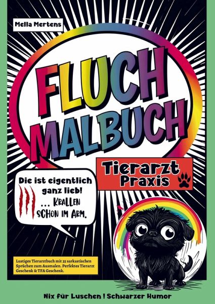 Fluch-Malbuch Tierarzt Praxis - Schwarzer Humor für Tierärzte & TFA.Tierhaare überall, Katzen mit Krallen aus der Hölle und Besitzer mit den Worten "Die ist eigentlich ganz lieb!" - willkommen im Alltag der Tierarztpraxis! Dieses Malbuch ist die perfekte Art, zwischen Impfungen, Bissen und Bürokratie einmal tief durchzuatmen - und sich den Frust von der Seele zu malen.Mit 35 lustigen, sarkastischen Sprüchen ist es das ideale Geschenk für alle, die wissen, dass Tierliebe manchmal auch weh tun kann.Highlights:-35 sarkastische Sprüche zum Ausmalen - perfekt für Tierärzte, TFA & Praxishelden mit Humor-74 Seiten voller schwarzem Humor - mit frechen Motiven, derben Sprüchen & entspannenden Mustern-Das ideale Tierarzt-Geschenk - perfekt als Dankeschön, Mitbringsel oder lustiger Gag für Kollegen-Einseitig bedruckt auf 90g-Papier - Rückseiten bewusst neutral, damit nichts durchdrückt-Empfohlen für Holzmalstifte - bei Filzstiften am besten ein Papier oder Löschblatt unterlegen-Humor trifftStressabbau - ideal nach einem Tag voller Krallen, Bisse und Stories von "Die macht das sonst nie!"Ein perfektes Geschenk für Tierärzte, Tierarzthelfer und TFA.