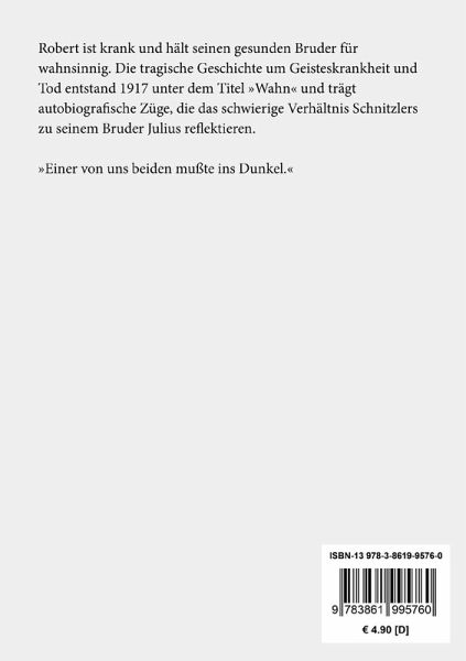 Robert ist krank und hält seinen gesunden Bruder für wahnsinnig. Die tragische Geschichte um Geisteskrankheit und Tod entstand 1917 unter dem Titel "Wahn" und trägt autobiografische Züge, die das schwierige Verhältnis Schnitzlers zu seinem Bruder Julius reflektieren.