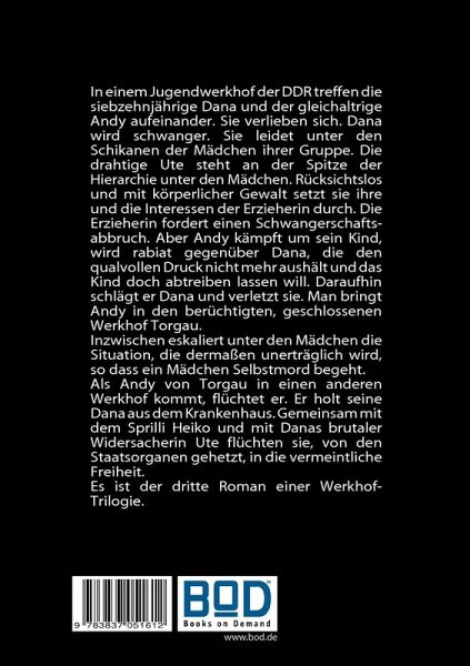 In einem Jugendwerkhof der DDR treffen die siebzehnjährige Dana und der gleichaltrige Andy aufeinander. Sie verlieben sich. Dana wird schwanger. Sie leidet unter den Schikanen der Mädchen ihrer Gruppe. Die drahtige Ute steht an der Spitze der Hierarchie unter den Mädchen. Rücksichtslos und mit körperlicher Gewalt setzt sie ihre und die Interessen der Erzieherin durch. Die Erzieherin fordert einen Schwangerschaftsabbruch. Aber Andy kämpft um sein Kind, wird rabiat gegenüber Dana, die den qualvollen Druck nicht mehr aushält und das Kind doch abtreiben lassen will. Daraufhin schlägt er Dana und verletzt sie. Man bringt Andy in den berüchtigten, geschlossenen Werkhof Torgau. Inzwischen eskaliert unter den Mädchen die Situation, die dermaßen unerträglich wird, so dass ein Mädchen Selbstmord begeht.Als Andy von Torgau in einen anderen Werkhof kommt, flüchtet er. Er holt seine Dana aus dem Krankenhaus. Gemeinsam mit dem Sprilli Heiko und mit Danas brutaler Widersacherin Ute flüchten sie, von den Staatsorganen gehetzt, in die vermeintliche Freiheit.Es ist der dritte Roman einer Werkhof-Trilogie.
