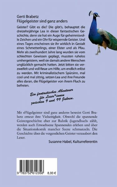 Geister? Gibt es die? Die gibt's, behauptet die dreizehnjährige Lea in dieser fantastischen Geschichte, denn sie hat ein Auge für geheimnisvolle Zeichen und ein Ohr für wispernde Geister. Und eines Tages erscheinen sie ihr wirklich in Gestalt eines Schmetterlings, einer Elster und als Pfau. Mehr als zweihundert Jahre lang wurden sie vom schlechten Gewissen geplagt, mussten ruhelos umhergeistern, weil sie damals andere Menschen unglücklich gemacht hatten. Jetzt bitten sie verzweifelt und voll Reue um Hilfe, um endlich erlöst zu werden. Mit kriminalistischem Spürsinn, mal cool und mal zittrig, setzen Lea und ihre Freunde alles daran, die Flügelgeister von ihrem Fluch zu befreien.