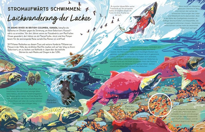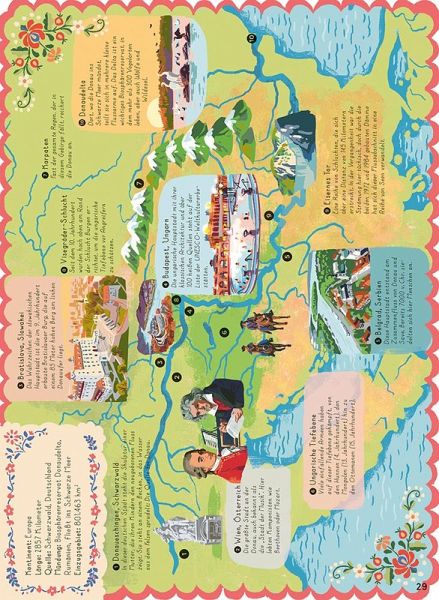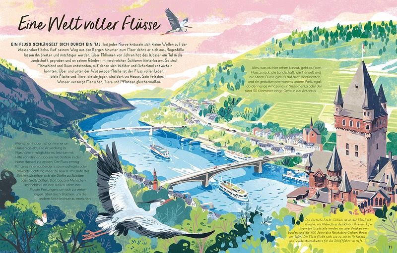 Zudem werden auf großformatigen Ausklappseiten die größten, bedeutsamsten und bekanntesten Wasserstraßen unserer sieben Kontinente vorgestellt. Komm mit zur Donau, zum Amazonas in Südamerika, an den Ganges, den Mississippi, zum Murray in Australien oder an die Ufer des Nils in Afrika. Ein üppig illustriertes Natursachbuch, vollgepackt mit wirklich allem, was es über Flüsse zu wissen gibt!
