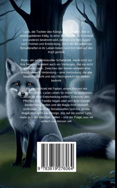 Lyria, die Tochter des Königs der Lichtelfen, lebt in einem goldenen Käfig. In einer Welt, in der ihr Schicksal von anderen bestimmt wird, sehnen sich ihre Augen nach Freiheit und Entdeckung. Doch als die geheimen Schattenelfen in ihr Leben treten, wird ihre Welt auf den Kopf gestellt. Riven, ein geheimnisvoller Schattenelf, weckt nicht nur ihre Neugier, sondern auch ein Verlangen, das sie nicht ignorieren kann. Zwischen den beiden entsteht eine unaufhaltsame Verbindung eine Verbindung, die alte Magien entfacht und das Gleichgewicht der Welten bedroht. Als die Hochzeit mit Faelan, einem Prinzen der Lichtelfen, droht, Lyrias Leben für immer zu bestimmen, muss sie eine Entscheidung treffen: Entweder den Pflichten ihrer Familie folgen oder sich ihrer wahren Bestimmung stellen und die Magie ihrer Herkunft entfesseln. Doch die Schattenelfen und ihre dunkle Magie sind nicht das Einzige, das auf sie wartet. Lyria muss sich der Wahrheit stellen und der Frage, was sie wirklich von Herzen will.
