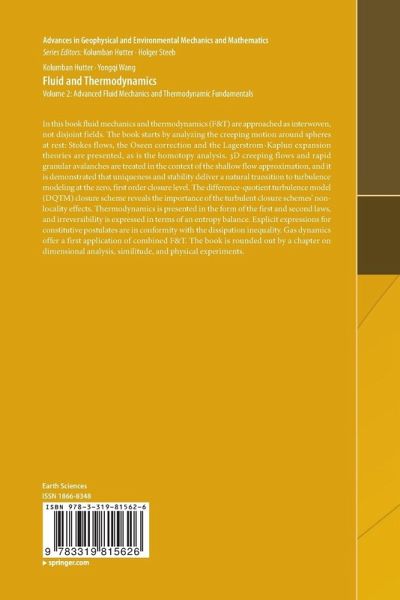 In this book fluid mechanics and thermodynamics (F&T) are approached as interwoven, not disjoint fields. The book starts by analyzing the creeping motion around spheres at rest: Stokes flows, the Oseen correction and the Lagerstrom-Kaplun expansion theories are presented, as is the homotopy analysis. 3D creeping flows and rapid granular avalanches are treated in the context of the shallow flow approximation, and it is demonstrated that uniqueness and stability deliver a natural transition to turbulence modeling at the zero, first order closure level. The difference-quotient turbulence model (DQTM) closure scheme reveals the importance of the turbulent closure schemes' non-locality effects. Thermodynamics is presented in the form of the first and second laws, and irreversibility is expressed in terms of an entropy balance. Explicit expressions for constitutive postulates are in conformity with the dissipation inequality. Gas dynamics offer a first application of combined F&T.The book is rounded out by a chapter on dimensional analysis, similitude, and physical experiments.