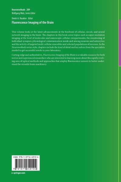 Cutting-edge and authoritative, Fluorescence Imaging of the Brain is a valuable resource for both novice and experienced researchers who are interested in learning more about this rapidly evolving area of optical methods and approaches that employ fluorescence sensors to better understand the versatile brain machinery.