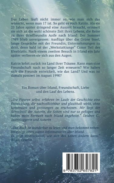 Das Leben läuft nicht immer so, wie man sich das wünscht, wenn man siebzehn ist. So geht es auch Katrin. Als sie 25 Jahre später dringend eine Auszeit braucht, erinnert sie sich an die wohl schönste Zeit ihres Lebens, die Reise zu ihrer Brieffreundin Aoife nach Irland. Der Sommer 1989 blieb unvergessen: Ausflüge über die Grüne Insel, lange Gespräche mit der Freundin, Unternehmungen zu dritt, denn bald ist der "Werkstattjunge" Conor Teil des Kleeblatts. Nach einem zweiten Besuch in Irland ein Jahr später verlieren sie sich aus den Augen. Katrin kehrt zurück ins Land ihrer Träume. Kann man eine Freundschaft nach so langer Zeit erneuern? Wie haben sich die Freunde entwickelt, wie das Land? Und was ist damals passiert im August 1990?Ein Roman über Irland, Freundschaft, Liebe und den Lauf des Lebens.