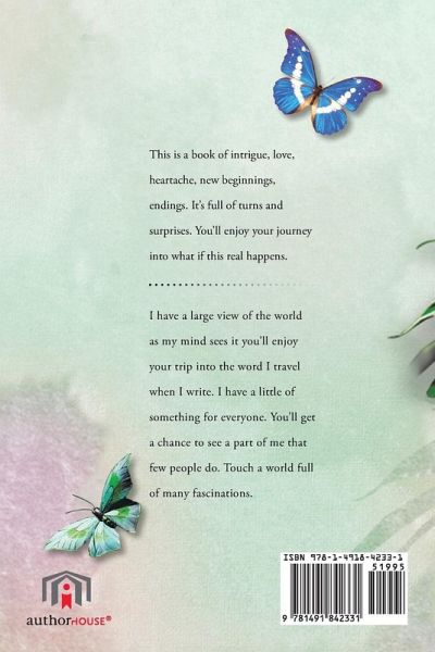 This is a book of intrigue, love, heartache, new biginnings and endings. Its full turns and surprise. You'll enjoy your journey into what if this real happens.