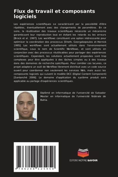 Les expériences scientifiques se caractérisent par la possibilité d'être répétées, éventuellement avec des changements de paramètres. En ce sens, la réutilisation des travaux scientifiques nécessite un mécanisme garantissant leur reproduction tout en évitant les retards ou les erreurs [Brock et al. 1997]. Les work ows constituent une option intéressante pour optimiser la coordination des processus [Sheth, Georgakopoulos et Hornick 1995]. Les work ows sont actuellement utilisés dans l'environnement scientifique, sous le nom de Scientific Work ows, et sont utilisés en conjonction avec des processus réutilisables pour partager des expériences scientifiques. Cependant, les solutions actuellement proposées sont trop complexes pour être appliquées à des tâches simples ou à des travaux dans des domaines de recherche spécifiques. Pour combler ces lacunes, ce projet adaptera un outil de Work ow librement distribué avec un code source ouvert pour coordonner non seulement les services Web, mais aussi les composants logiciels qui suivent le modèle DCC (Digital Content Component) [Santanchè 2006]. Le domaine d'application du système produit sera applicable au partage d'expériences scientifiques.