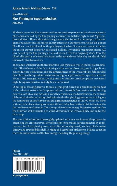 The book covers the flux pinning mechanisms and properties and the electromagnetic phenomena caused by the flux pinning common for metallic, high-Tc and MgB2 superconductors. The condensation energy interaction known for normal precipitates or grain boundaries and the kinetic energy interaction proposed for artificial Nb pins in Nb-Ti, etc. are introduced for the pinning mechanism. Summation theories to derive the critical current density are discussed in detail. Irreversible magnetization and AC loss caused by the flux pinning are also discussed. The loss originally stems from the ohmic dissipation of normal electrons in the normal core driven by the electric field induced by the flux motion.