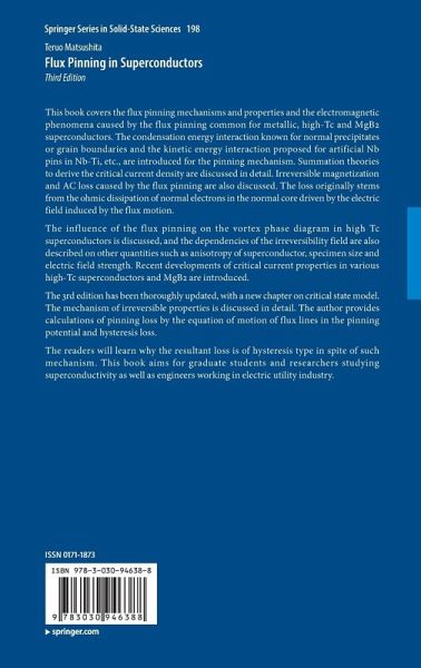 This book covers the flux pinning mechanisms and properties and the electromagnetic phenomena caused by the flux pinning common for metallic, high-Tc and MgB2 superconductors. The condensation energy interaction known for normal precipitates or grain boundaries and the kinetic energy interaction proposed for artificial Nb pins in Nb-Ti, etc., are introduced for the pinning mechanism. Summation theories to derive the critical current density are discussed in detail. Irreversible magnetization and AC loss caused by the flux pinning are also discussed. The loss originally stems from the ohmic dissipation of normal electrons in the normal core driven by the electric field induced by the flux motion.