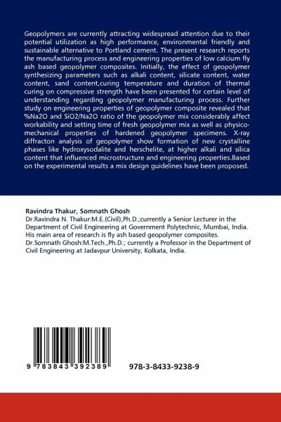Geopolymers are currently attracting widespread attention due to their potential utilization as high performance, environmental friendly and sustainable alternative to Portland cement. The present research reports the manufacturing process and engineering properties of low calcium fly ash based geopolymer composites. Initially, the effect of geopolymer synthesizing parameters such as alkali content, silicate content, water content, sand content,curing temperature and duration of thermal curing on compressive strength have been presented for certain level of understanding regarding geopolymer manufacturing process. Further study on engineering properties of geopolymer composite revealed that %Na2O and SiO2/Na2O ratio of the geopolymer mix considerably affect workability and setting time of fresh geopolymer mix as well as physico-mechanical properties of hardened geopolymer specimens. X-ray diffracton analysis of geopolymer show formation of new crystalline phases like hydroxysodalite and herschelite, at higher alkali and silica content that influenced microstructure and engineering properties.Based on the experimental results a mix design guidelines have been proposed.