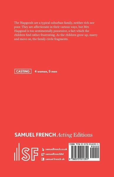 The Hapgoods are a typical suburban family, neither rich nor poor. They are affectionate in their various ways, but Mrs Hapgood is too sentimentally possessive, a fact which the children find rather frustrating. As the children grow up, marry and move on, the family circle fragments. 4 women, 5 men