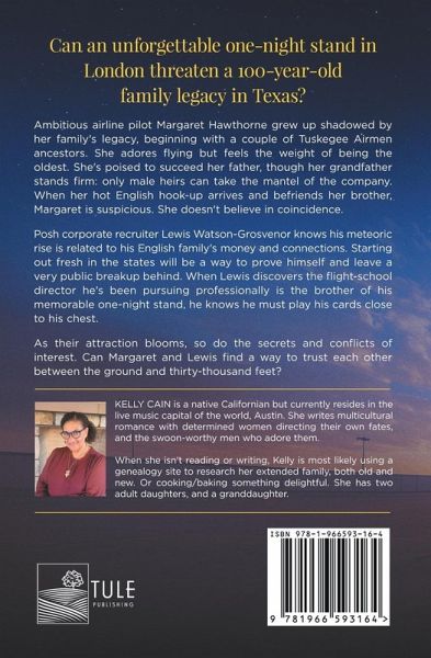 Can an unforgettable one-night stand in London threaten a 100-year-old family legacy in Texas? Ambitious airline pilot Margaret Hawthorne grew up shadowed by her family's legacy, beginning with a couple of Tuskegee Airmen ancestors. She adores flying but feels the weight of being the oldest. She's poised to succeed her father, though her grandfather stands firm: only male heirs can take the mantel of the company. When her hot English hook-up arrives and befriends her brother, Margaret is suspicious. She doesn't believe in coincidence. Posh corporate recruiter Lewis Watson-Grosvenor knows his meteoric rise is related to his English family's money and connections. Starting out fresh in the states will be a way to prove himself and leave a very public breakup behind. When Lewis discovers the flight-school director he's been pursuing professionally is the brother of his memorable one-night stand, he knows he must play his cards close to his chest. As their attraction blooms, so do the secrets and conflicts of interest. Can Margaret and Lewis find a way to trust each other between the ground and thirty-thousand feet?