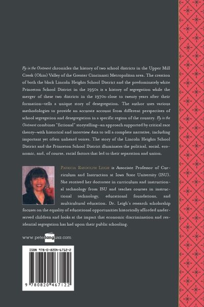 Fly in the Ointment chronicles the history of two school districts in the Upper Mill Creek (Ohio) Valley of the Greater Cincinnati Metropolitan area. The creation of both the black Lincoln Heights School District and the predominately white Princeton School District in the 1950s is a history of segregation while the merger of these two districts in the 1970s - close to twenty years after their formation - tells a unique story of desegregation. The author uses various methodologies to provide an accurate account from different perspectives of school segregation and desegregation in a specific region of the country. Fly in the Ointment combines «fictional» storytelling - an approach supported by critical race theory - with historical and interview data to tell a complete narrative, including important yet often unheard voices. The story of the Lincoln Heights School District and the Princeton School District illuminates the political, social, economic, and, of course, racial factors that led to their separation and union.