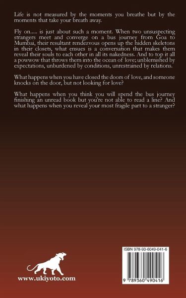 Life is not measured by the moments you breathe but by the moments that take your breath away. Fly on..... is just about such a moment. When two unsuspecting strangers meet and converge on a bus journey from Goa to Mumbai, their resultant rendezvous opens up the hidden skeletons in their closets, what ensues is a conversation that makes them reveal their souls to each other in all its nakedness. And to top it all a powwow that throws them into the ocean of love; unblemished by expectations, unburdened by conditions, unrestrained by relations. What happens when you have closed the doors of love, and someone knocks on the door, but not looking for love? What happens when you think you will spend the bus journey finishing an unread book but you're not able to read a line? And what happens when you reveal your most fragile part to a stranger?