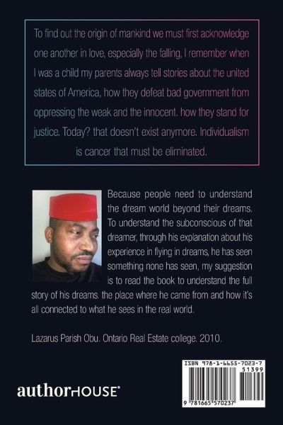 The book of flying dreams is all about awareness of dreams, to understand that the real world is not too far from the dream world, one body one spirit but two different places at the same time. Imagine if you can choose where to go when you go to sleep wouldn't that be amazing? with everything that's happening around the world today, and there is a place where anyone can go and catch a break for a moment and find peace and happiness, wake up the next day with a positive mindset and self-fulfilment of inner desires wouldn't that be tremendous? that's the place I want to show you.