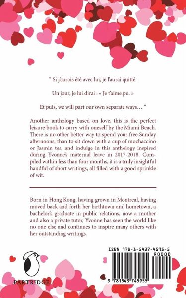 Si jaurais t avec lui, je laurai quitt. Un jour, je lui dirai : Je taime pu. Et puis, we will part our own separate ways Another anthology based on love, this is the perfect leisure book to carry with oneself by the Miami Beach. There is no other better way to spend your free Sunday afternoons, than to sit down with a cup of mochaccino or Jasmin tea, and indulge in this anthology inspired during Yvonnes maternal leave in 2017-2018. Compiled within less than four months, it is a truly insightful handful of short writings, all filled with a good sprinkle of wit.