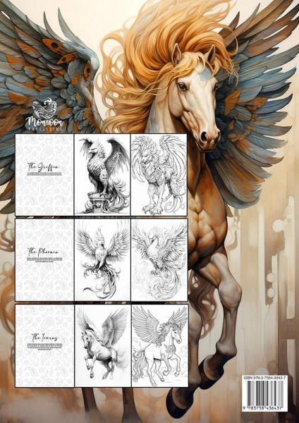Geflügelte Mythen Malbuch für ErwachseneDrei besonders beliebte Kreaturen aus der griechischen Mythologie als Malbuch: Phönix, Ikarus und Griffin. Das Malbuch beinhaltet52 S.A4schwarze Rückseiten (kein durchdrücken, optimal zum aufhängen)farbenprächtige Phönix Vögelwunderschöne Ikarus Pferdeund prachtvolle GriffinsJedes Motiv als Graustufen Malvorlage und Outline. Das Graustufen Malbuch ist ein tolles Geschenk für alle Liebhaber der Mythologie und für Fantasy Fans.