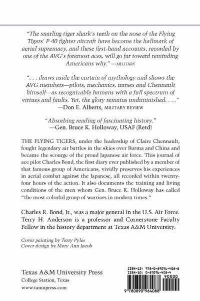 " Draws aside the curtain of mythology and shows the AVG members--pilots, mechanics, nurses, and Chennault himself--as recognizable humans with a full spectrum of virtues and faults. Yet, the glory remains undiminished . . . A Flying Tiger's Diary is highly readable and is wholeheartedly recommended."-Military Review The Flying Tigers, under the leadership of Claire Chennault, fought legendary air battles in the skies over Burma and China. This journal of ace pilot Charles Bond, now in its fifth printing, vividly preserves his experiences in aerial combat against the Japanese, all recorded within twenty-four hours of the action. It also documents the training and living conditions of the men whom Gen. Bruce K. Holloway has called "the most colorful group of warriors in modern times." A limited, specially bound edition of A Flying Tiger's Diary, signed and with a laid-in print by Terry Pyles, is available while supply lasts."