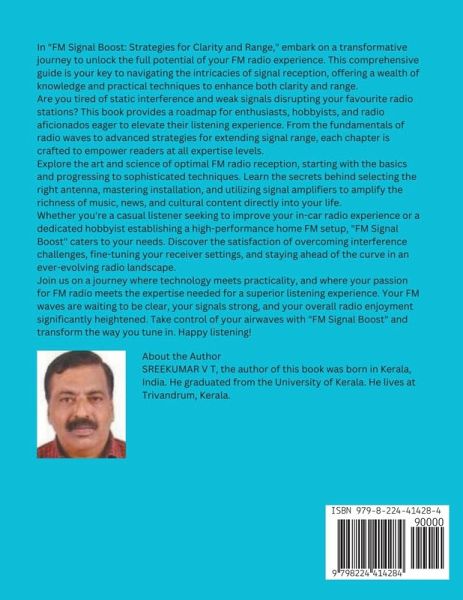 In "FM Signal Boost: Strategies for Clarity and Range," embark on a transformative journey to unlock the full potential of your FM radio experience. This comprehensive guide is your key to navigating the intricacies of signal reception, offering a wealth of knowledge and practical techniques to enhance both clarity and range. Are you tired of static interference and weak signals disrupting your favourite radio stations? This book provides a roadmap for enthusiasts, hobbyists, and radio aficionados eager to elevate their listening experience. From the fundamentals of radio waves to advanced strategies for extending signal range, each chapter is crafted to empower readers at all expertise levels. Explore the art and science of optimal FM radio reception, starting with the basics and progressing to sophisticated techniques. Learn the secrets behind selecting the right antenna, mastering installation, and utilizing signal amplifiers to amplify the richness of music, news, and cultural content directly into your life. Whether you're a casual listener seeking to improve your in-car radio experience or a dedicated hobbyist establishing a high-performance home FM setup, "FM Signal Boost" caters to your needs. Discover the satisfaction of overcoming interference challenges, fine-tuning your receiver settings, and staying ahead of the curve in an ever-evolving radio landscape. Join us on a journey where technology meets practicality, and where your passion for FM radio meets the expertise needed for a superior listening experience. Your FM waves are waiting to be clear, your signals strong, and your overall radio enjoyment significantly heightened. Take control of your airwaves with "FM Signal Boost" and transform the way you tune in. Happy listening!