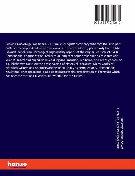 Focalóir GaoidhilgeSaxBhéarla, - Or, An IrishEnglish dictionary Whereof the Irish part hath been compiled not only from various Irish vocabularies, particularly that of Mr. Edward Lhuyd is an unchanged, high-quality reprint of the original edition of 1768.