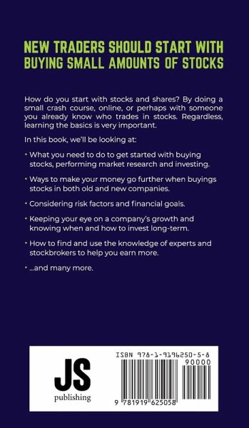 New traders should start with buying small amounts of stocks. How do you start with stocks and shares? By doing a small crash course, online, or perhaps with someone you already know who trades in stocks. Regardless, learning the basics is very important. In this book, we'll be looking at: ¿ What you need to do to get started with buying stocks, performing market research and investing. ¿ Ways to make your money go further when buyings stocks in both old and new companies. ¿ Considering risk factors and financial goals. ¿ Keeping your eye on a company's growth and knowing when and how to invest long-term. ¿ How to find and use the knowledge of experts and stockbrokers to help you earn more. ¿ ...and many more.