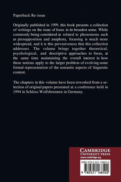 This book presents a collection of papers on the issue of focus in its broadest sense. While commonly being considered as related to phenomena such as presupposition and anaphora, focusing is much more widely spread, and it is this pervasiveness that this collection addresses. The volume explicitly aims to bring together theoretical, psychological, and descriptive approaches to focus, at the same time maintaining the overall interest in how these notions apply to the larger problem of evolving some formal representation of the semantic aspects of linguistic content. The contributed papers to this volume have been reworked from a selection of original work presented at a conference held in 1994 in Schloss Wolfsbrunnen in Germany.