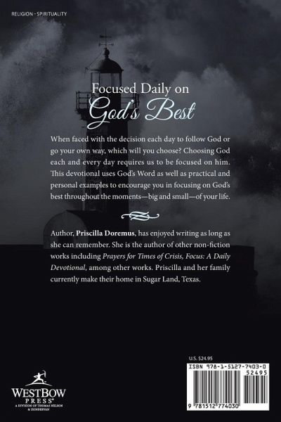 When faced with the decision each day to follow God or go your own way, which will you choose? Choosing God each and every day requires us to be focused on him. This devotional uses God's Word as well as practical and personal examples to encourage you in focusing on God's best throughout the moments-big and small-of your life.