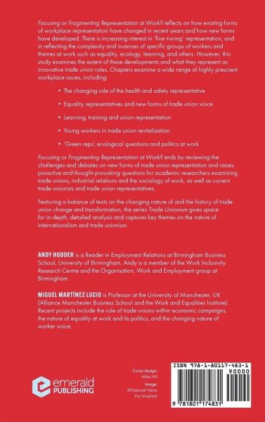 Reflecting on how existing forms of workplace representation have changed, Focusing or Fragmenting Representation at Work? raises proactive and thought-provoking questions for researchers examining trade unions, industrial relations and the sociology of work, as well as current trade unionists and trade union representatives.
