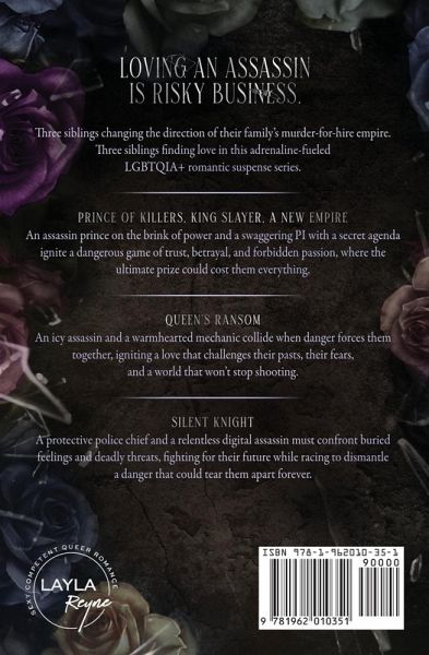 It's risky business loving an assassin, especially the Madigans of Fog City. Three siblings changing the direction of their family's murder-for-hire empire. Three siblings finding love in this adrenaline-fueled LGBTQIA+ romantic suspense series. Hawes & Dante Prince of Killers, King Slayer, A New Empire An assassin prince on the brink of power and a swaggering PI with a secret agenda ignite a dangerous game of trust, betrayal, and forbidden passion, where the ultimate prize could cost them everything. Helena & Celia Queen's Ransom An icy assassin and a warmhearted mechanic collide when danger forces them together, igniting a love that challenges their pasts, their fears, and a world that won't stop shooting. Holt & Brax Silent Knight A protective police chief and a relentless digital assassin must confront buried feelings and deadly threats, fighting for their future while racing to dismantle a danger that could tear them apart forever.