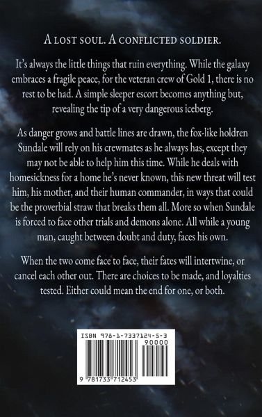 A lost soul. A conflicted soldier. It's always the little things that ruin everything. While the galaxy embraces a fragile peace, for the veteran crew of Gold 1, there is no rest to be had. A simple sleeper escort becomes anything but, revealing the tip of a very dangerous iceberg. As danger grows and battle lines are drawn, the fox-like holdren Sundale will rely on his crewmates as he always has, except they may not be able to help him this time. While he deals with homesickness for a home he's never known, this new threat will test him, his mother, and their human commander, in ways that could be the proverbial straw that breaks them all. More so when Sundale is forced to face other trials and demons alone, all while a young man, caught between doubt and duty, faces his own. When the two come face to face, their fates will intertwine, or cancel each other out. There are choices to be made, and loyalties tested, either could mean the end for one, or both.