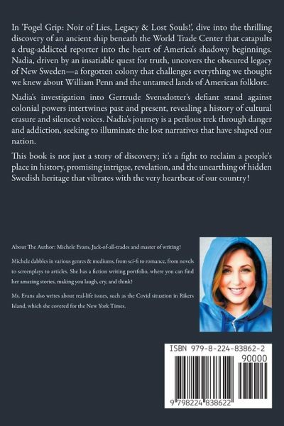 In 'Fogel Grip: Noir of Lies, Legacy & Lost Souls!', dive into the thrilling discovery of an ancient ship beneath the World Trade Center that catapults a drug-addicted reporter into the heart of America's shadowy beginnings. Nadia, driven by an insatiable quest for truth, uncovers the obscured legacy of New Sweden-a forgotten colony that challenges everything we thought we knew about William Penn and the untamed lands of American folklore. Nadia's investigation into Gertrude Svensdotter's defiant stand against colonial powers intertwines past and present, revealing a history of cultural erasure and silenced voices. Nadia's journey is a perilous trek through danger and addiction, seeking to illuminate the lost narratives that have shaped our nation. This book is not just a story of discovery; it's a fight to reclaim a people's place in history, promising intrigue, revelation, and the unearthing of hidden Swedish heritage that vibrates with the very heartbeat of our country!