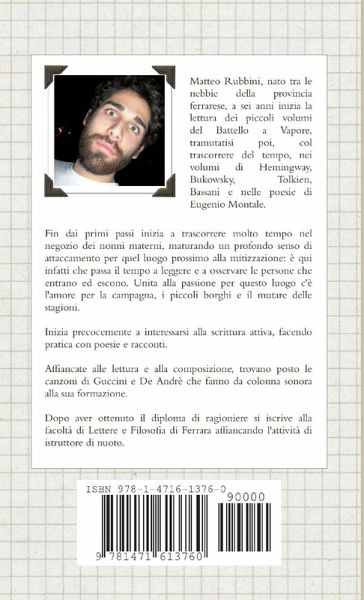 Matteo Rubbini, nato tra le nebbie della provincia ferrarese, a sei anni inizia la lettura dei piccoli volumi del Battello a Vapore, tramutatisi poi, col trascorrere del tempo, nei volumi di Hemingway, Bukowsky, Tolkien, Bassani e nelle poesie di Eugenio Montale. Fin dai primi passi inizia a trascorrere molto tempo nel negozio dei nonni materni, maturando un profondo senso di attaccamento per quel luogo prossimo alla mitizzazione: è qui infatti che passa il tempo a leggere e a osservare le persone che entrano ed escono. Unita alla passione per questo luogo c'è l'amore per la campagna, i piccoli borghi e il mutare delle stagioni. Inizia precocemente a interessarsi alla scrittura attiva, facendo pratica con poesie e racconti. Affiancate alle lettura e alla composizione, trovano posto le canzoni di Guccini e De Andrè che fanno da colonna sonora alla sua formazione.