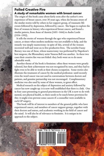 After her own experience of breast cancer, Heather Goodare began to explore the connection between traumatic life events, depression and anxiety, and breast cancer in the lives of famous women in history. From Anne of Austria (1601-1666) to Audre Lourde (1934-1992), the author found repeated instances of this same pattern of trauma, followed by depression, followed by cancer. The book includes stories of women who experienced breast cancer at times when modern medicine was not available to help: in spite of this, several of the women recovered well and went on to live productive lives. One was the novelist Fanny Burney, whose mastectomy was performed by Napoleon's best surgeon; the Bloomsbury artist Vanessa Bell was another. In these two cases their creative fire was not foiled: they both went on to do more admirable work. The feminist theme of restrictions on women's use of their talents is another major theme in the book. The author argues that there is a connection between foiled creative expression and poor health outcomes and advocates strongly for a holistic approach to breast cancer treatment. This book will be of interest to members of the general public who have experienced cancer, together with their doctors and nurses, and academics working in the field of cancer and the mind. It is unique in its approach to the subject.