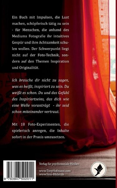 Ein Buch mit Impulsen, die Lust machen, schöpferisch tätig zu sein - für Menschen, die anhand des Mediums Fotografie ihr intuitives Gespür und ihre Achtsamkeit schulen wollen. Der Schwerpunkt liegt nicht auf der Foto-Technik, sondern auf den Themen Inspiration und Originalität. Ich brauche dir nicht zu sagen, was es heißt, inspiriert zu sein. Du weißt es schon. Du und das Gefühl des Inspiriertseins, das dich wie eine Welle voranträgt - ihr seid schon miteinander vertraut. Mit 18 Foto-Experimenten, die spielerisch anregen, die Inhalte sofort in der Praxis umzusetzen. Textauszug: Ein kreativer Prozess, der gute Fotos hervorbringt, kann als eine Metapher verstanden werden für ein gelingendes Leben. In beiden Fällen geht es darum, das Wesentliche zu fokussieren, Unwesentliches auszusortieren - und zuzulassen, dass sich das, was da ist, spielerisch zu einem stimmigen Ganzen zusammenfügt. Dieses Buch lässt sich somit auf dreierlei Art lesen, und ich möchte zugleich drei unterschiedliche Lesergruppen ansprechen: Zum einen ist dieses Buch für Menschen gedacht, die ein Interesse an persönlichem Wachstum, an der Entfaltung ihrer Persönlichkeit, ihrer Identität, ihrer individuellen Eigenart haben. Menschen, die Lust haben, sich auf einen solchen Prozess einzulassen und die die Fotografie als einen möglichen Weg dorthin ausprobieren wollen. Zum anderen ist es für diejenigen geschrieben, die mir von einer kleinen Enttäuschung berichten, die manchmal auftritt, während sie fotografieren: Ich sehe etwas in meiner Umgebung, was sich ganz spannend und aufregend anfühlt. Dann mache ich ein Foto davon. Und wenn ich das Foto anschaue, bin ich irgendwie enttäuscht. Denn das Foto zeigt überhaupt nicht das, was ich dort draußen so interessant fand. Ich habe dieses Buch für Leserinnen und Leser geschrieben, die dieses Gefühl kennen und bessere Fotos machen wollen. Und schließlich ist das Buch auch denjenigen gewidmet, die Hilfesuchende im Kontext von Beratung, Coaching und Psychotherapie professionell begleiten und die nach unkonventionellen Wegen suchen, um bei ihren Klientinnen und Klienten etwas "in Gang zu bringen". Die Experimente dieses Buches bieten ein vielfältiges Repertoire an Anregungen, die sich auch in der Beratungspraxis einsetzen lassen.