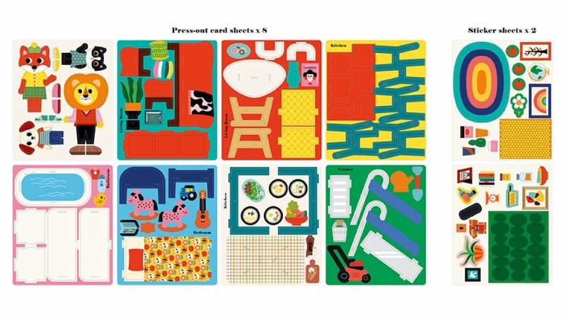 This fantastic fold-out book effortlessly transforms into a stylish 3D doll's house that children can explore and play with! There are stand-up characters to bring to life, pieces of press-out furniture to build and colourful stickers to decorate the house with. You can make the kitchen, bathroom, living room and bedroom your own and then enjoy hours of play in your customised doll's house. Fold-out + Play Doll's House is perfect for playtime on-the-go or for those with limited space, as all the press-out pieces can be stored away in the sturdy drawer attached so you are ready for play wherever you go!