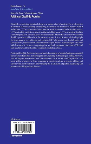 This book aims to cover the knowledge of protein folding accumulated from studies of disulfide-containing proteins, including methodologies, folding pathways, and folding mechanism of numerous extensively characterized disulfide proteins. Folding of Disulfide Proteins will be valuable supplementary reading for general biochemistry, biophysics, molecular biology, and cellular biology courses for graduate and undergraduate students. This book can also be used for specialized graduate-level biochemistry, biophysics, and molecular biology courses dedicated to protein folding as well as related biological problems and diseases.
