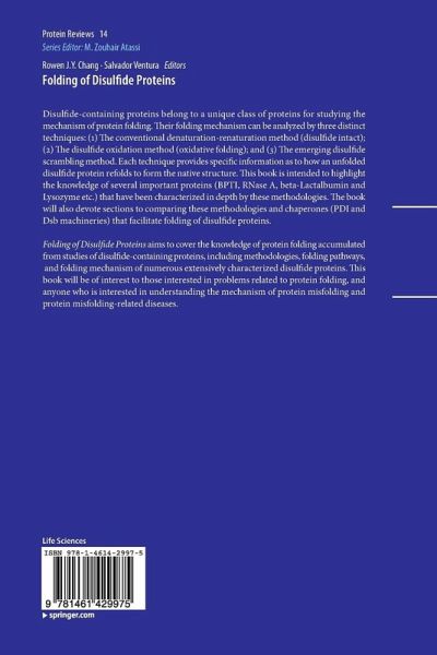 This book aims to cover the knowledge of protein folding accumulated from studies of disulfide-containing proteins, including methodologies, folding pathways, and folding mechanism of numerous extensively characterized disulfide proteins. Folding of Disulfide Proteins will be valuable supplementary reading for general biochemistry, biophysics, molecular biology, and cellular biology courses for graduate and undergraduate students. This book can also be used for specialized graduate-level biochemistry, biophysics, and molecular biology courses dedicated to protein folding as well as related biological problems and diseases.