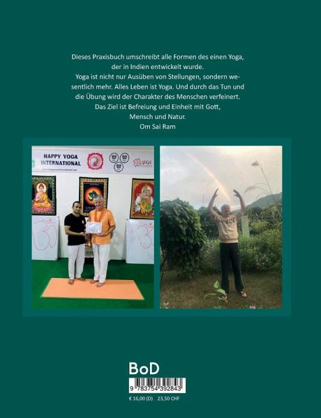 Dieses Praxisbuch umschreibt alle Formen des einen Yoga, der in Indien entwickelt wurde. Yoga ist nicht nur Ausüben von Stellungen, sondern wesentlich mehr. Alles Leben ist Yoga.Und durch das Tun und die Praxis Anwendung wird der Charakter des Menschen verfeinert.Das Ziel ist Befreiung und Einheit mit Gott, Mensch und Natur. Om Sai Ram