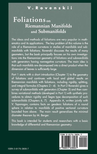 I. Foliations on Manifolds.- 1.1 Definitions and examples of foliations.- 1.2 Holonomy.- 1.3 Ehresmann foliations.- 1.4 Foliations and curvature.- II. Local Riemannian Geometry of Foliations.- 2.1 The main tensors and their invariants.- 2.2 A Riemannian almost-product structure.- 2.3 Constructions of geodesic and umbilic foliations.- 2.4 Curvature identities.- 2.5 Riemannian foliations.- III. T-Parallel Fields and Mixed Curvature.- 3.1 Jacobi and Riccati equations.- 3.2 T-parallel vector fields and the Jacobi equation.- 3.3 L-parallel vector fields and variations of curves.- 3.4 Positive mixed curvature.- IV. Rigidity and Splitting of Foliations.- 4.1 Foliations on space forms.- 4.2 Area and volume of a T-parallel vector field.- 4.3 Riccati and Raychaudhuri equations.- V. Submanifolds with Generators.- 5.1 Submanifolds with generators in Riemannian spaces.- 5.2 Submanifolds with generators in space forms.- 5.3 Submanifolds with nonpositive extrinsic q-Ricci curvature..- 5.4 Ruled submanifolds with conditions on mean curvature.- 5.5 Submanifolds with spherical generators.- VI. Decomposition of Ruled Submanifolds.- 6.1 Cylindricity of submanifolds in a Riemannian space of nonnegative curvature.- 6.2 Ruled submanifolds in CROSS and the Segre embedding..- 6.3 Ruled submanifolds in a Riemannian space of positive curvature and Segre type embeddings.- VII. Decomposition of Parabolic Submanifolds.- 7.1 Parabolic submanifolds in CROSS.- 7.2 Parabolic submanifolds in a Riemannian space of positive curvature.- 7.3 Remarks on pseudo-Riemannian isometric immersions.- Appendix A. Great Sphere Foliations and Manifolds with Curvature Bounded Above.- A.1 Great circle foliations.- A.2 Extremal theorem for manifolds with curvature bounded above.- Appendix B. Submersions of Riemannian Manifolds with Compact Leaves.- Appendix C. Foliations by Closed Geodesics with Positive Mixed Sectional Curvature.- References.