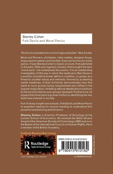 Stanely Cohen's study of deviant groups - society's "folk devils" - and the public and media reaction to them, is widely hailed as a classic of its kind. With great insight he reviews recent theory and criticism about the concept of "moral panics" and discusses the moral panics surrounding the folk devils of recent times.