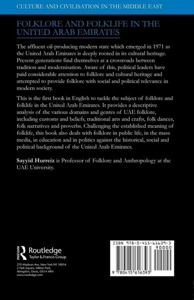 A unique description and analysis of the domains and genres of UAE folklore, including folk customs and beliefs, traditional arts and crafts, folk dances, folk narratives and proverbs. Challenging the established meaning of folklife, this volume also deals with folklore in public life, in the mass media, in education and in politics.